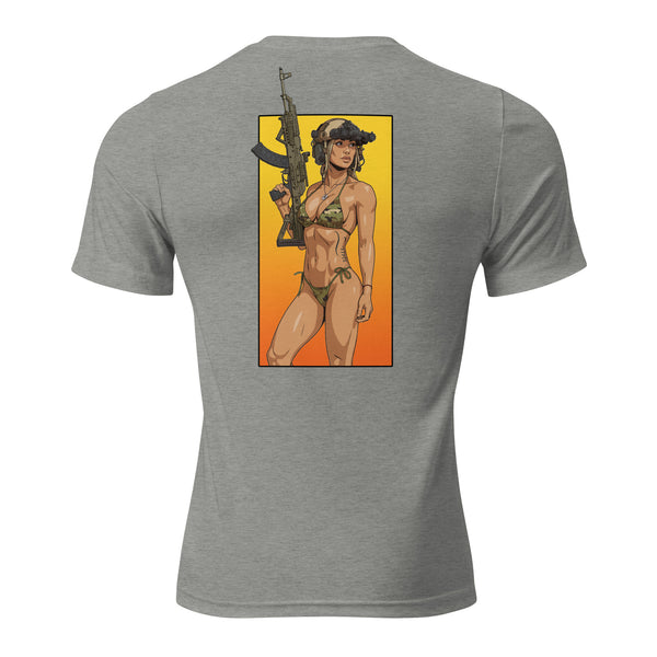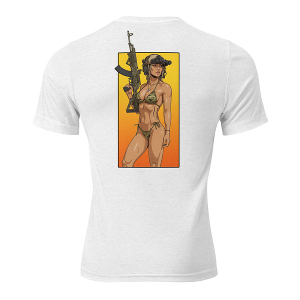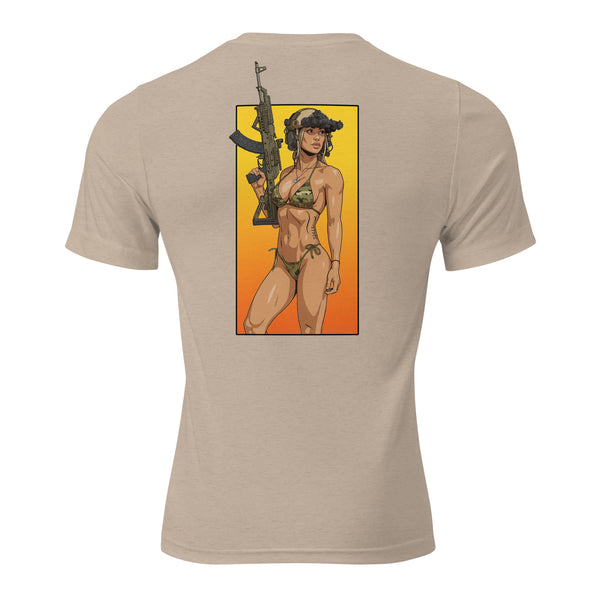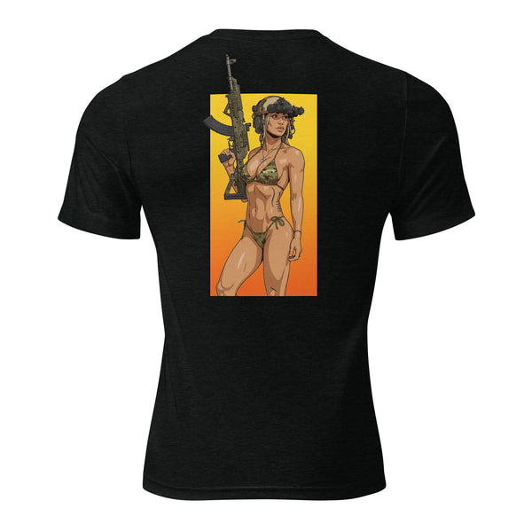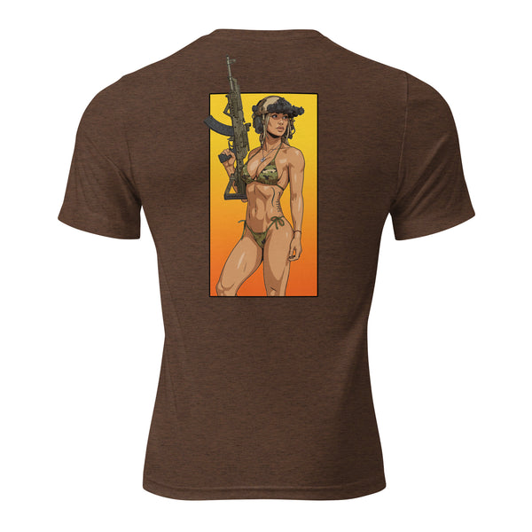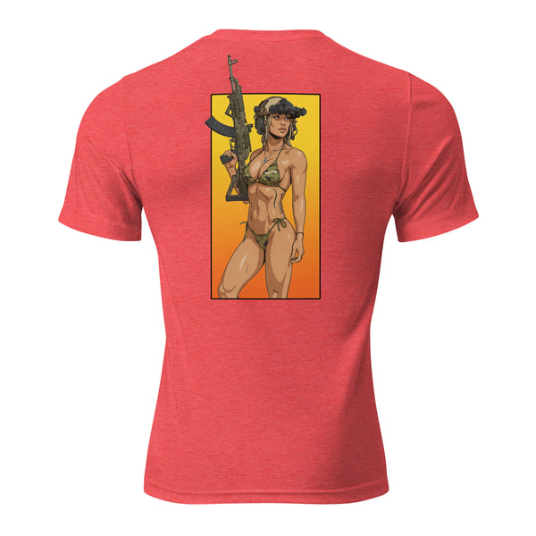 The tri-blend fabric creates a vintage, fitted look. And extreme durability makes this t-shirt withstand repeated washings and still remain super comfortable.