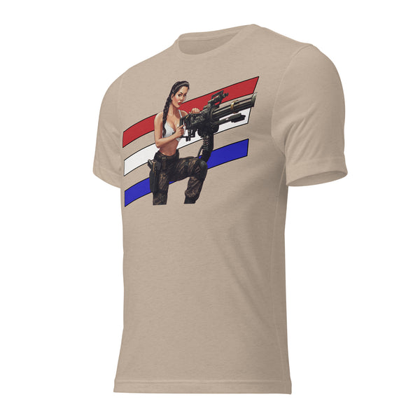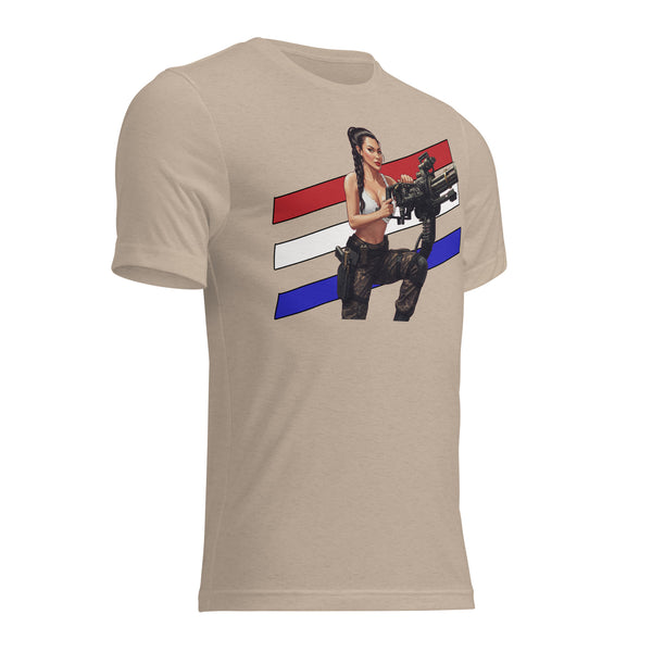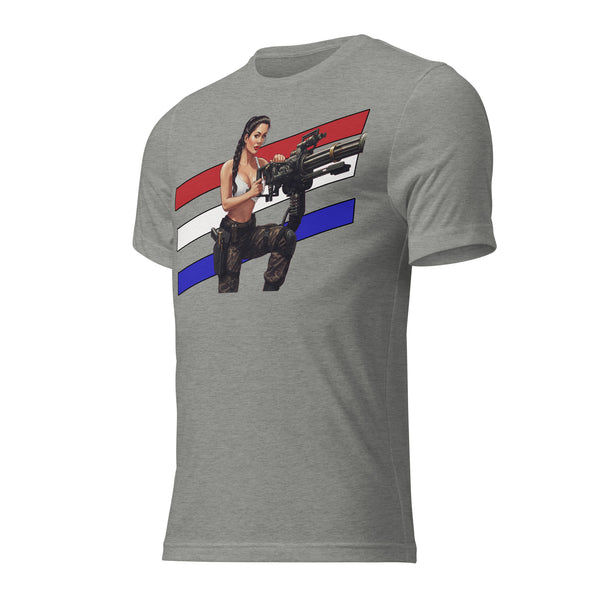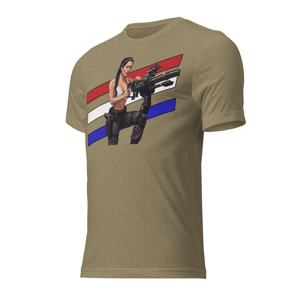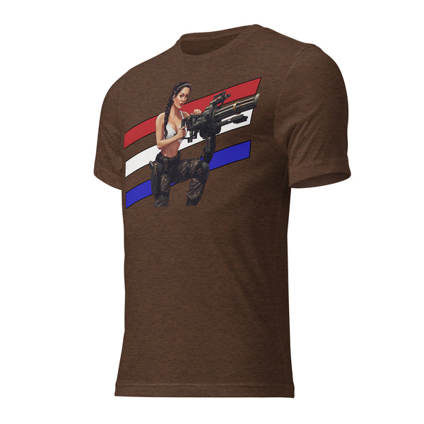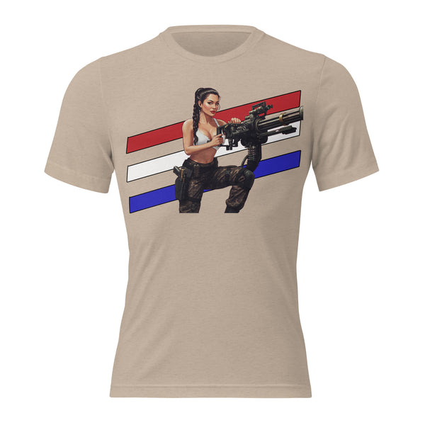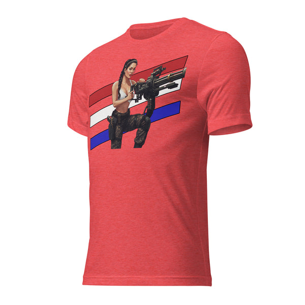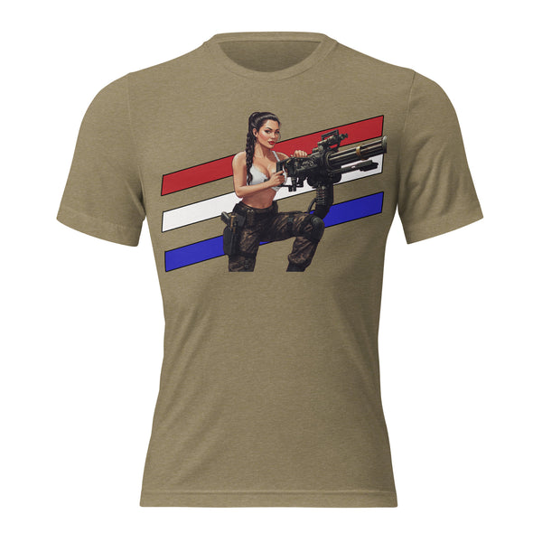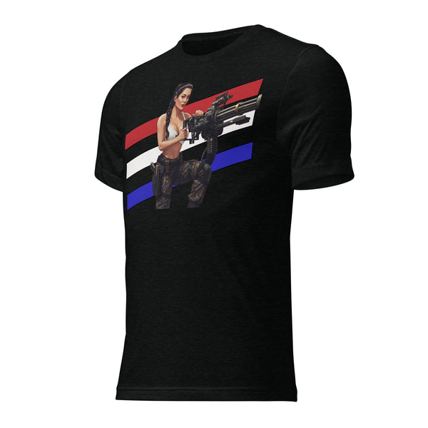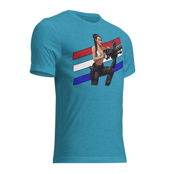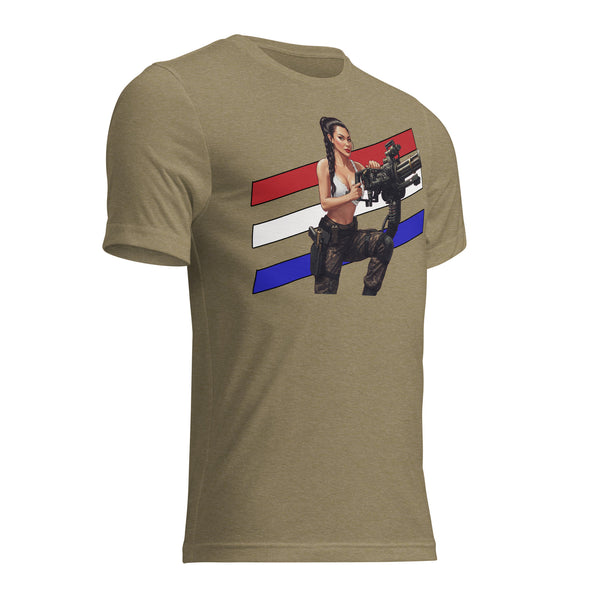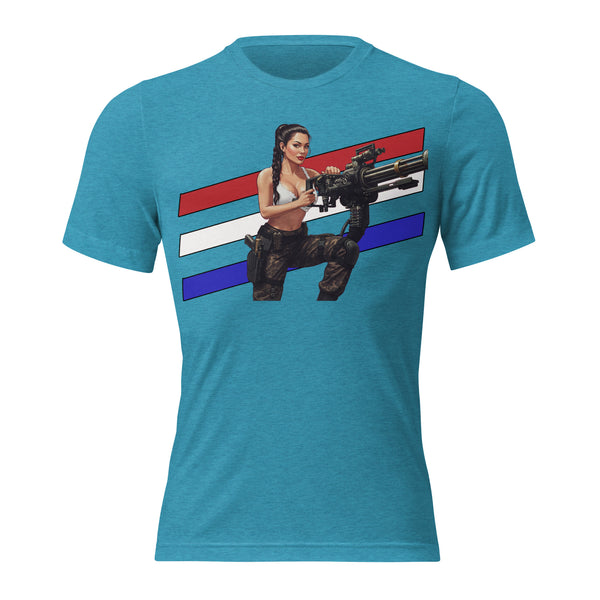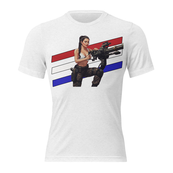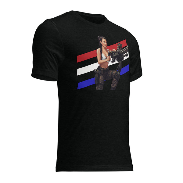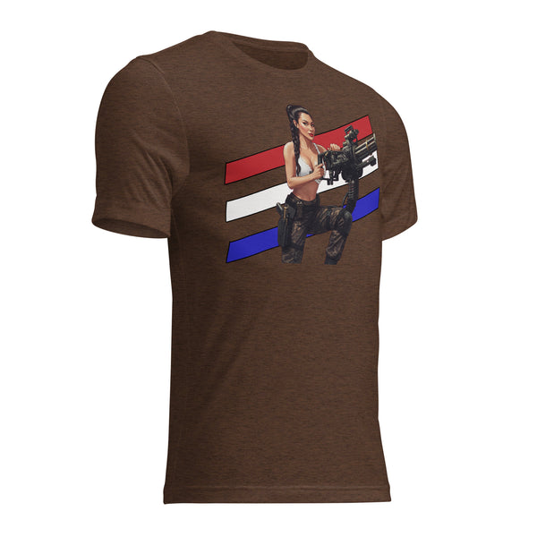 The tri-blend fabric creates a vintage, fitted look. And extreme durability makes this t-shirt withstand repeated washings and still remain super comfortable.