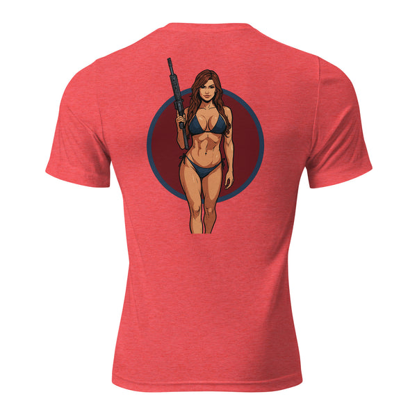 The tri-blend fabric creates a vintage, fitted look. And extreme durability makes this t-shirt withstand repeated washings and still remain super comfortable.