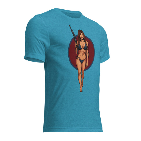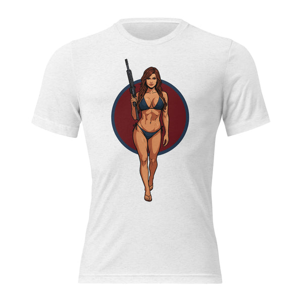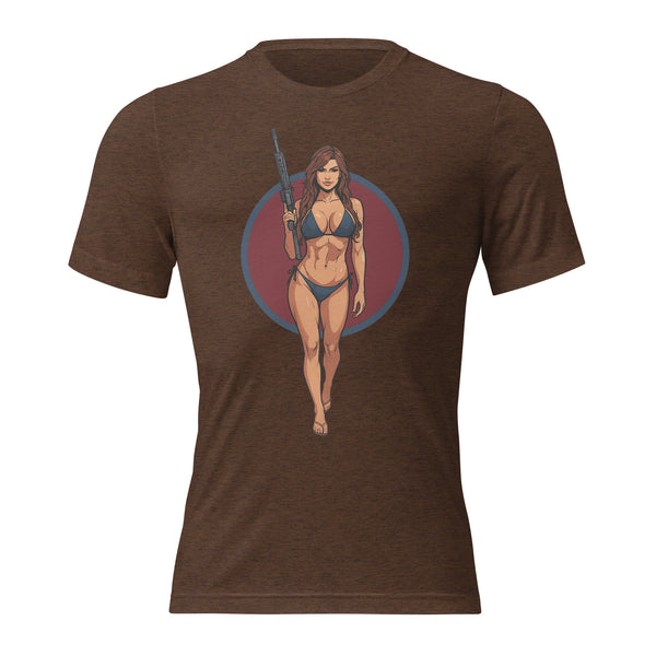 The tri-blend fabric creates a vintage, fitted look. And extreme durability makes this t-shirt withstand repeated washings and still remain super comfortable.